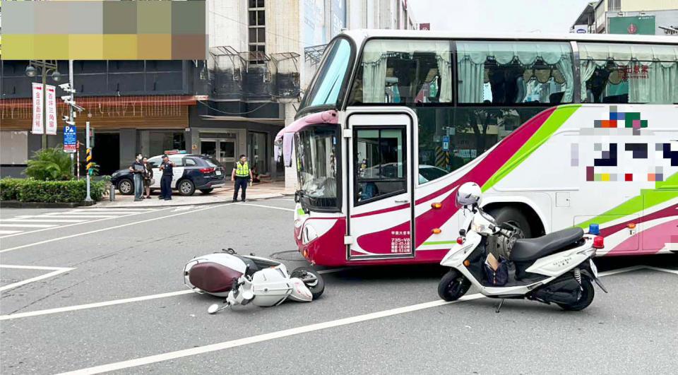 女機車騎士擦撞大客車幸輕傷 三民警初步研判疑闖紅燈肇事