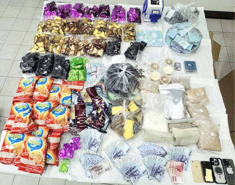 高市陳姓男子(26歲)等8人涉嫌租用透天厝作為掩護,並透過通訊軟體兜售K他命、毒品咖啡包等,左營分局文自派出所獲報會同偵查隊、新莊派出所成立專案小組,並報請高雄地檢署檢察官王勢豪指揮偵辦,循線在多處地點查獲毒品咖啡包2529包(重約9.5公斤)、K他命逾930公克、神仙水、毒品梅錠、卡西酮原料、封口機、磅秤、分裝器具、手機等物,全案依違反毒品危害防制條例送辦,陳男等2人羈押禁見,左營分局長謝承甫說,毒品危害個人健康、家庭及社會,警方積極查緝掃蕩。圖/左營分局提供、文/高培德