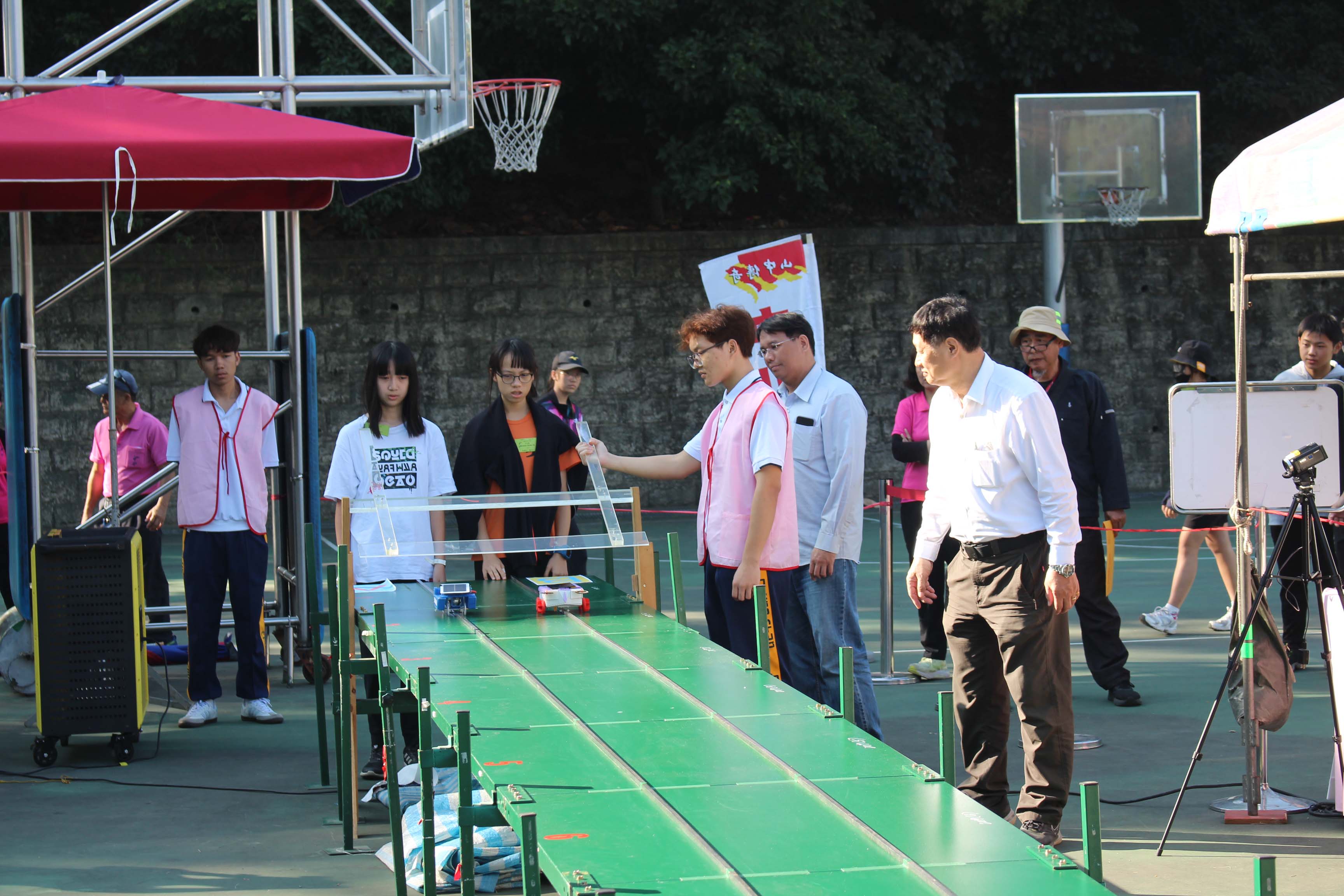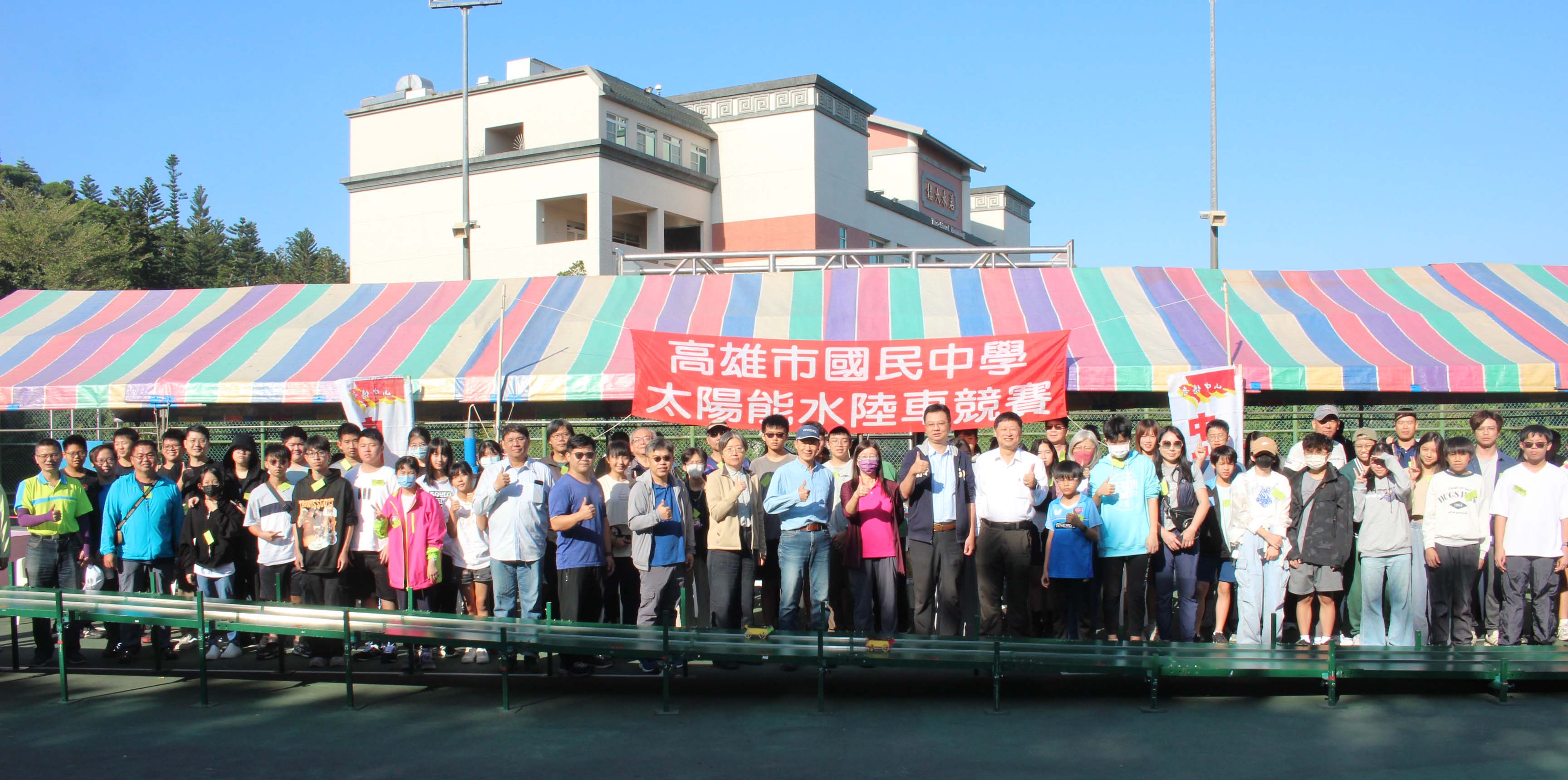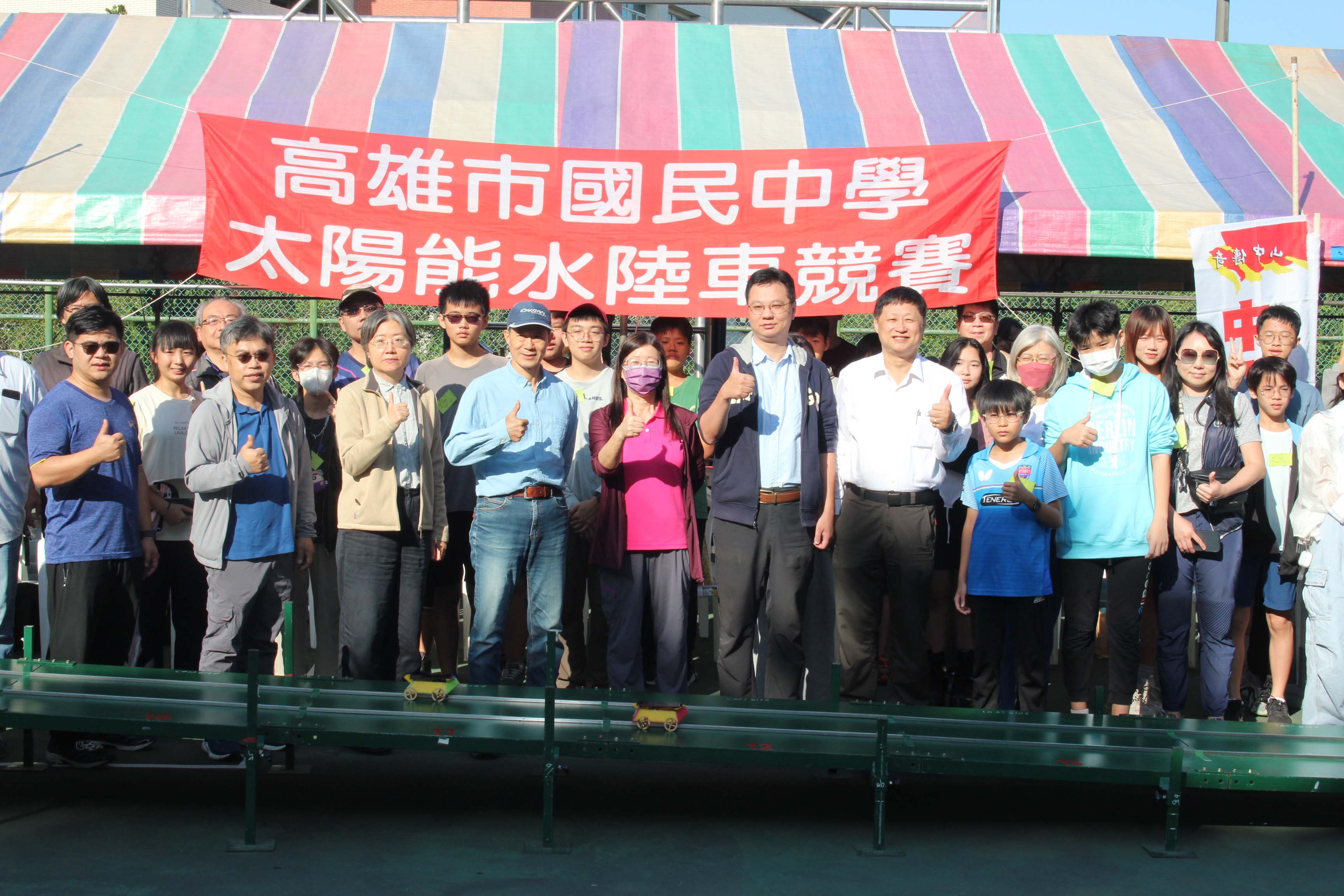 高市教育局114學年度國中太陽能水陸車競賽12月13日在中山工商舉行,26校、32隊、64名選手同場競技,最速抵達終點者勝出,教育局專委許佳晃、中山工商副校長劉盈芬等人參與開幕式,經分組對抗,左營區福山國中劉冠妤、蔡昀蓉「福山超跑」拿下第一名,鳳山國中張語珈、蔡旻芸「鳳翼飛馳」、岡山區前峰國中曾雉凱、蘇子翔「對」分獲二、三名。圖與文/高培德