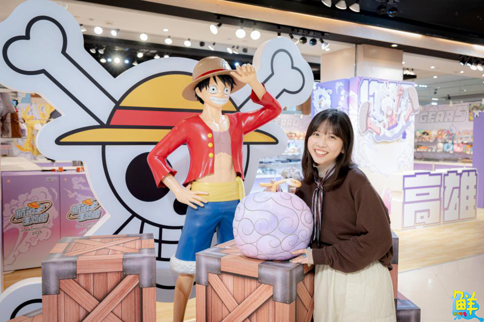 快閃店中央搶眼的「高雄」字樣大型裝飾,不僅「霸氣」滿滿,也多了一股在地氣息。店內以經典魯夫各檔為主軸,打造沉浸式熱血氛圍。入口迎賓處更設置了首次於高雄亮相的等身大魯夫公仔,是粉絲絕不可錯過的必拍打卡點!