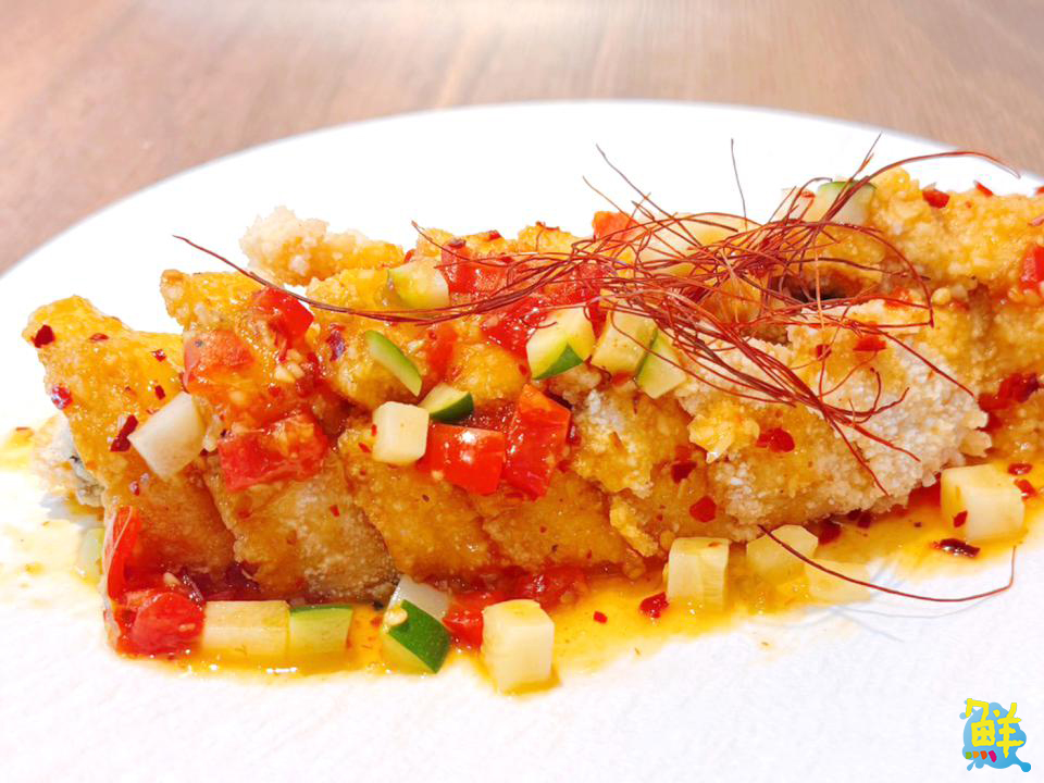 ▲泰式橙香松鼠魚:外酥內嫩,酸甜橙香微辣,香氣十足,味道層次豐富。