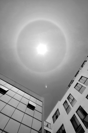 中午11時30分,剛剛下班的《新三門》記者陳興長一齣辦公室,就看到了那個“美麗的光環”,他立即取出相機拍了幾張,並給本報傳來了照片。“到12點的時候,日暈才漸漸消失。”