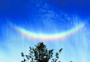 這種倒挂的彩虹也叫環天頂弧。彩虹是可見光譜經過水滴後折射形成的。而這種倒挂彩虹是光線照在冰晶如某類雲中所含冰晶的上方,然後經過冰晶邊緣折射形成。