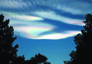 看起來有點像極光,但事實上,它們是一種完全不同的大氣現象,叫做珠母雲。有時也被叫做珍珠母雲,它們形成于相對較高的海拔,在海平面約24公里之上。這意味著日暮後這些高處的雲仍能被太陽照到。在極地地區,這種雲並不罕見,但是,在中緯度地區很少能看到。圖中的雲就出現在中緯度,在美國科羅拉多州拍攝。