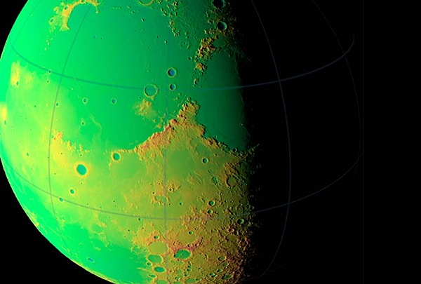 NASA希望透過這些照片,提供未來兩年在月球上擁有類似GPS的導航能力;圖中綠色區域顯示最低點,紅色顯示最高點。