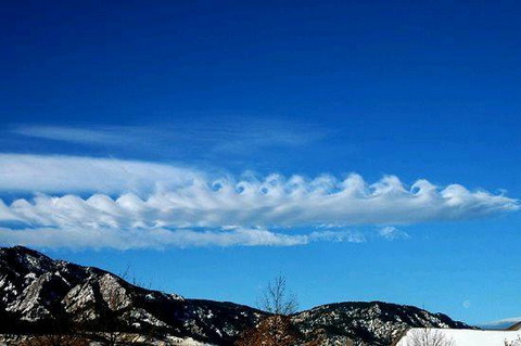 但是如果山丘比較孤立,那麼形成莢狀雲的形狀就會是橢圓形的,遠看