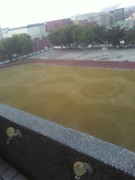 皮後,撒水機噴過所留下的水造成草皮增生成圓形狀,不過以前也並無