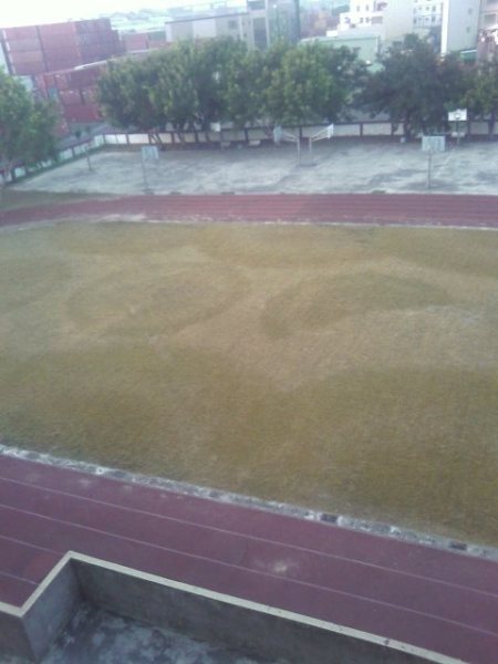 據高雄林先生提供的照片:高雄市興仁國中的操場草地上,出現像麥田