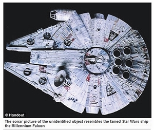 聲吶圖像顯示,這個神秘的“海底UFO”深深嵌入海底部淤泥中,其附近海床的泥沙還有一條大約300米長被刮擦過的痕跡,很可能是飛碟以高速墜落海底後著陸滑行時留下的軌跡。而在距該物體大約200米遠處,還有一個類似的圓盤狀物體。