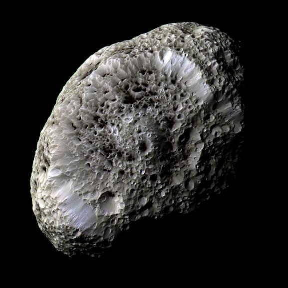 土衛七“許珀裏翁”是土星眾多衛星中的一個。它形狀怪異,臉上長滿“痘痕”並且密度極低,大約只有水的一半左右,所擁有的多孔結構一定超乎我們想像。形象地說,土衛七就是一個400公里長的超級海綿。太陽系內的絕大多數大型天體都有較為固定的旋轉週期,例如地球的24小時,與這些天體有所不同的是,土衛七的旋轉較為混亂無序。如果生活在這顆外形猶如一個足球並且不停翻著跟頭的衛星,敲定每週的日程安排絕對是一項不小挑戰,因為每一天的長度都在變化,非常不穩定。
