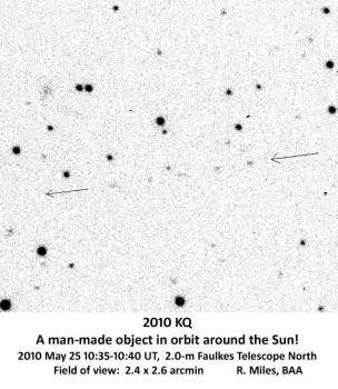 英國天文協會(BAA)李察米爾斯(Richard Miles)過去數週利用位在英國的福克斯北望遠鏡(Faulkes Telescope North,FTN)追蹤觀測一個環繞太陽運行的新天體2010 KQ,根據最新的觀測結果,Miles等人認為2010KQ很可能是個人造物體。但到目前為止,尚未找到過去30年間任何與2010 KQ軌道相符的太空船發射事件。