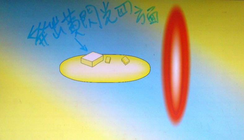 如何判定那最大四方平面凸出物隨碟形飛行物自轉至前方時,自體發出像相機閃光燈亮度的黃色閃光,並非自然界反射光: