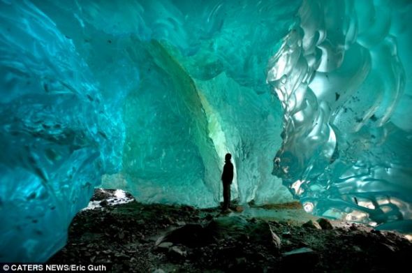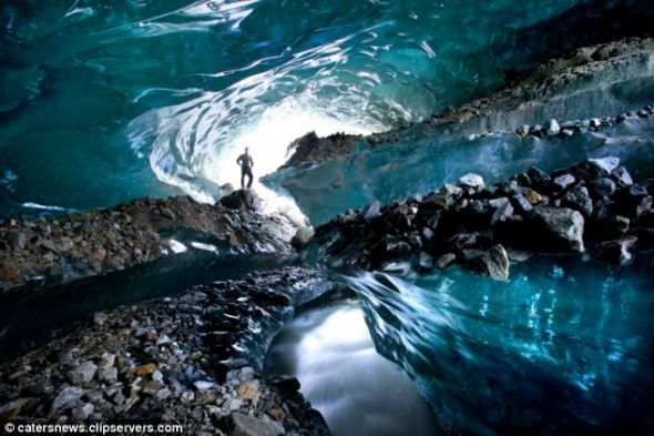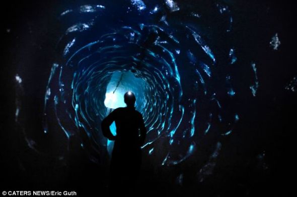 30歲的埃裏克經常在神秘怪異的冰川內一呆就是幾天,這些地方有著令人難以置信的溫度:有時低達零下20攝氏度。即使面臨肺炎、凍傷和洞穴隨時都有可能坍塌的風險,但這位攝影師並沒被這一切嚇倒。埃裏克在很小時癡迷上冰川以後,過去5年他一直在尋找神秘的未知洞穴,在裏面生活,給它們拍照。