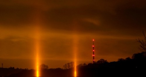 據報道,這一令人讚嘆的“光景觀”通常在日落時分出現,它們的形成是由於較低雲層中的冰晶捕捉到附近的光線,並像數以百萬計的微型鏡子一樣,將光線折射回地面的結果。日落時冰晶反射的是太陽光線,但人為創造的光線在西約克郡也能製造類似的壯觀效果。