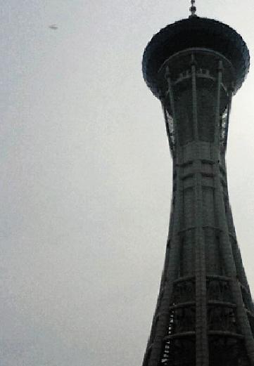記者在天涯上搜索發現了這麼一個帖子:“前幾天在杭州灣大橋上海天一洲拍了幾張照片,整理的時候居然發現拍到UFO類似物,激動啊,上圖上真相,童鞋們,給我鑒定鑒定啊。”