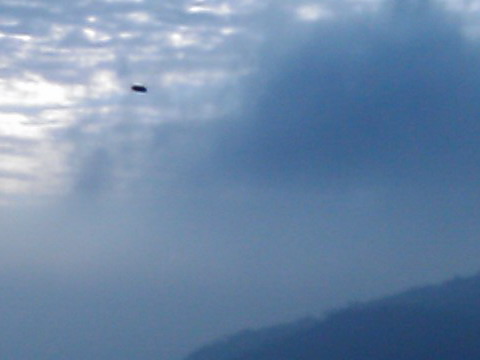 站長說明:照片中的不明飛行物體看起來確像飛碟,但很可惜您拍攝時未親眼目擊,無法提供它的飛行方式、路徑及出現始末等狀況。因此,也有可能是氣球或飛鳥等自然物,拍攝時未留意而入鏡。黃先生特提供此照片供大家研究,並質疑是否與附近七星山的金字塔有關?