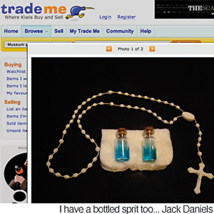 據紐西蘭媒體3月4日報道,日前,一家名為Trademe的紐西蘭購物網站公開競價銷售一對鬼魂。據賣家稱,他家多年鬧鬼直到請來一位驅鬼師,最終抓住了兩個鬼魂,並用聖水把他們封在瓶子裏休眠。但是他膽小,不敢整天把鬼魂帶在身邊,於是決定在網上拍賣。沒想到,紐西蘭當地網友對這對鬼魂異常感興趣,目前已經從較低的起拍價格競價到275英鎊,隨著銷售截至日期的到來,售價將會進一步飆升。