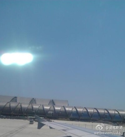 到下午5時許,網友“小白Warmiss”在雙流機場二號候機室繼續曝料,先稱一進準備室就聽空保說什麼不明飛行物,旋即驚呼“導致各大航班延誤 ,導致北京西藏成都禁航的龐然大物來了”並貼出一張據說是現場拍攝的照片。他還說,他的空軍朋友透露,成都地區空軍已經拉響一級戰備。