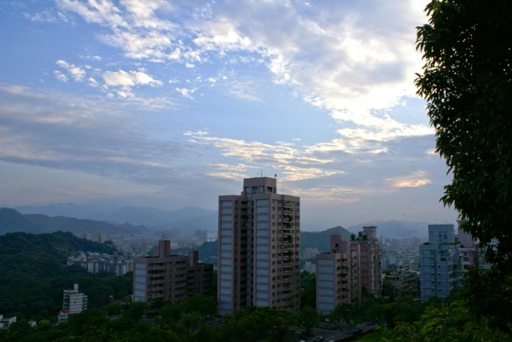 3. ※新店上空的飛碟※:之前看到的全是夜晚的光飛船,從不曾於白天觀察到過飛碟,壓根沒想到要去放大白天曾照過的相片,都只是瀏覽一下。所以萬萬沒預料到居然在9月20日到萬芳社區140高地公園登山攬勝時所拍照的相片集之中,其中這張往新店及中和方向上空的照片裡藏著一台像橢圓形正在斜飛的黑色飛碟,哈哈!雖沒親眼目賭但被拍攝到留下證據還是很棒的感覺。(圖3-1-1:DSC08159-6M及局面放大的照片)