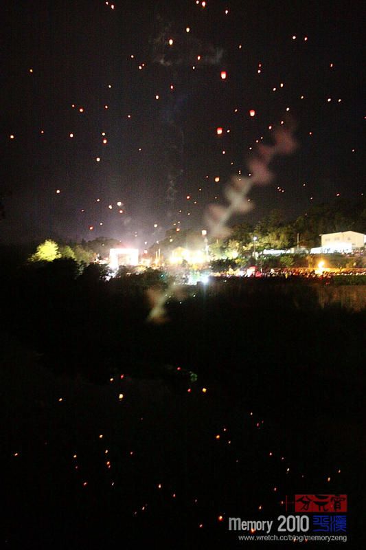 拍攝者說明:當日跟家人朋友一起,參觀在台北縣平溪鄉十分村的放天燈活動,在會場旁所拍的一張照片中,出現疑似飛棍的不明物體。