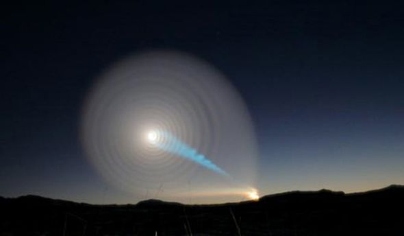 2009年12月,一場壯觀的螺旋光線秀在挪威北部天空出現。當時的目擊者看到一個巨大的螺旋,一道竹綠色光束從其中心射出照亮天空,同時形成雨滴的漣漪效果。表面上看,它好像是存在于另一維度的蟲洞,但據俄羅斯國防部透露,這些怪異的光線實際上是俄羅斯的一枚布拉瓦彈道導彈導致的,導彈在發射之後出現故障。當時,這枚“笨手笨腳”的布拉瓦彈道導彈在試驗中失控旋轉,形成神秘的旋轉螺旋視覺效果。