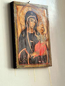 據了解,這個男子名叫伊薩特,出生在土耳其,他自稱“會流淚的這幅油畫高約30釐米,是2006年妻子過生日時一位黎巴嫩牧師送給她的。”這幅油畫今年2月12號開始流下“眼淚”——放置油畫的墻壁不斷有從油畫上滴落的油畫顏料。