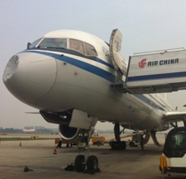英國太陽報在6月10日報導,刊載一張令人震驚的圖像,一架中國民航機疑似與UFO擦撞,致使在機鼻出現明顯凹洞。