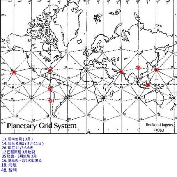 不可思議的近年發生在雲南汶川、日本仙台、印尼、巴基斯坦、秘魯、夏威夷、海地、智利等地的大地震、地裂,都發生在這些能量密集的點上。