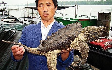 中國安徽一位漁民近日在湖中捕撈到一隻奇特的生物,它的頭像鱷魚、軀體像恐龍,而背上又長著像龜一樣的甲殼。當地漁業部門的專家鑒定後表示,這種生物屬於外來物種,很可能是僅產于美洲的大鱷龜。它的出現可能會對當地生態系統造成威脅。