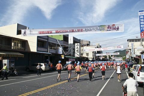 拍攝者說明:去年6月份在高雄縣六龜鄉寶來村的三項鐵人剛起跑時,我拍最後的隊伍做紀念,剛好只拍一張,回家整理相片才發現的。